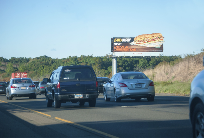 Eye catching and mouth watering,this Subway Sandwich had over half a million viewers (545,068) on I-95 looking forward to lunch each week.Source Communications Inc. literally went above and beyond the classic billbord design to display a delicious Subway Sandwhich with one of the largest cutouts on the interstate. Utilizing a cut out element demands attention by breaking the lines of symmetry and giving drivers more than they expect to see. The cutout also allowed the sandwhich to really shine above the tree line against the bright sky.